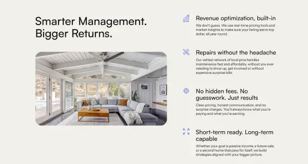 Dream Management helps property owners earn more with data-driven pricing, optimized listings, and hands-on rental management expertise.